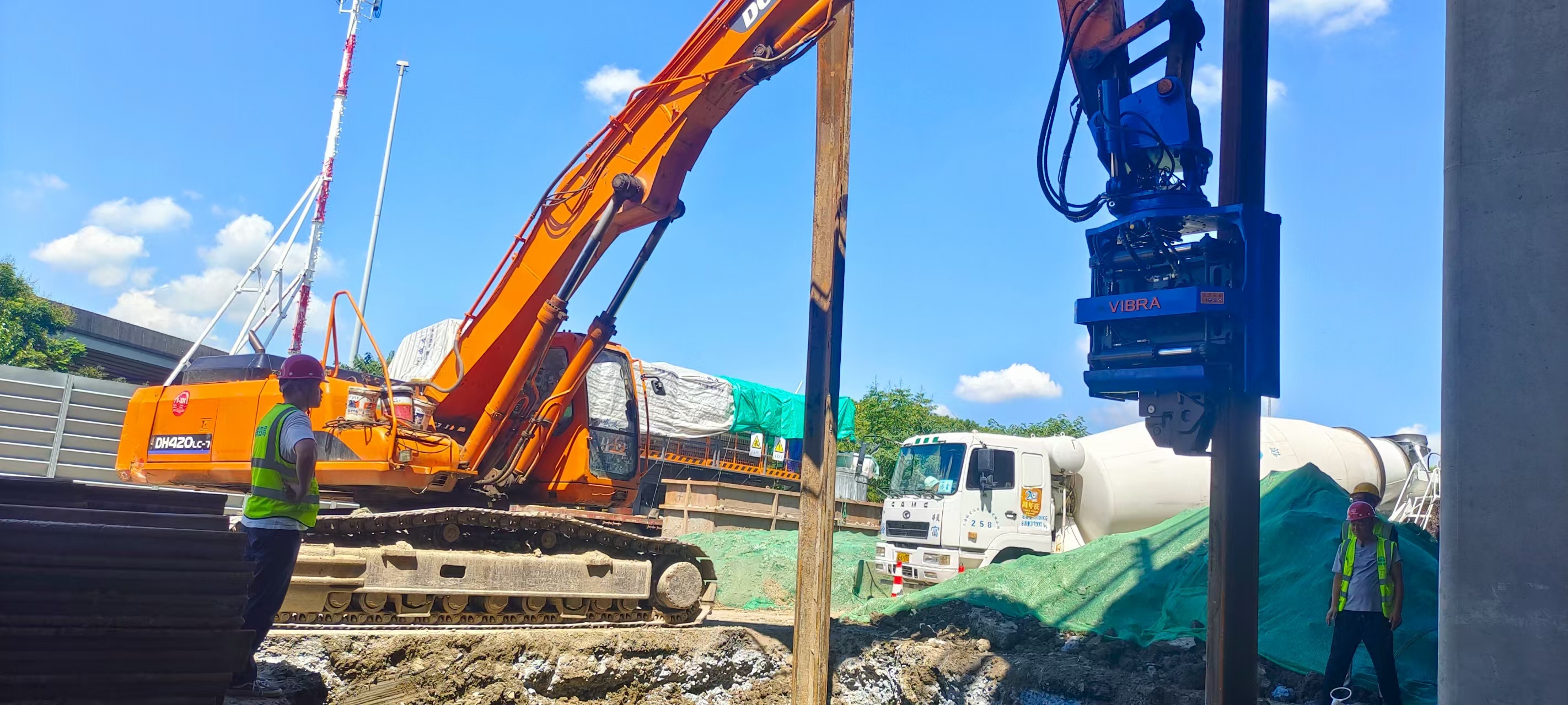 Προερχόμενο από την ΚΙΝΑ, το VIBRA Side Grip Pile Driver είναι κατάλληλο για ένα ευρύ φάσμα περιπτώσεων εφαρμογής προϊόντων. Είτε πρόκειται για την κατασκευή θεμελίων, τοίχων αντιστήριξης ή έργων υποδομής, αυτό το μηχάνημα υπερέχει στην οδήγηση πασσάλων μήκους έως 12 μέτρων με μέγιστη δύναμη έλξης 120 KN.